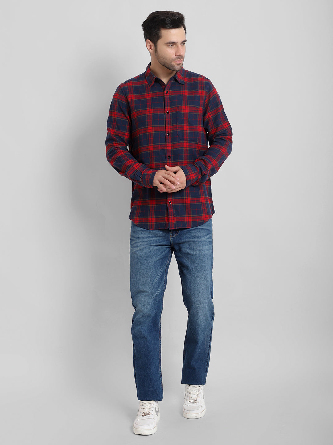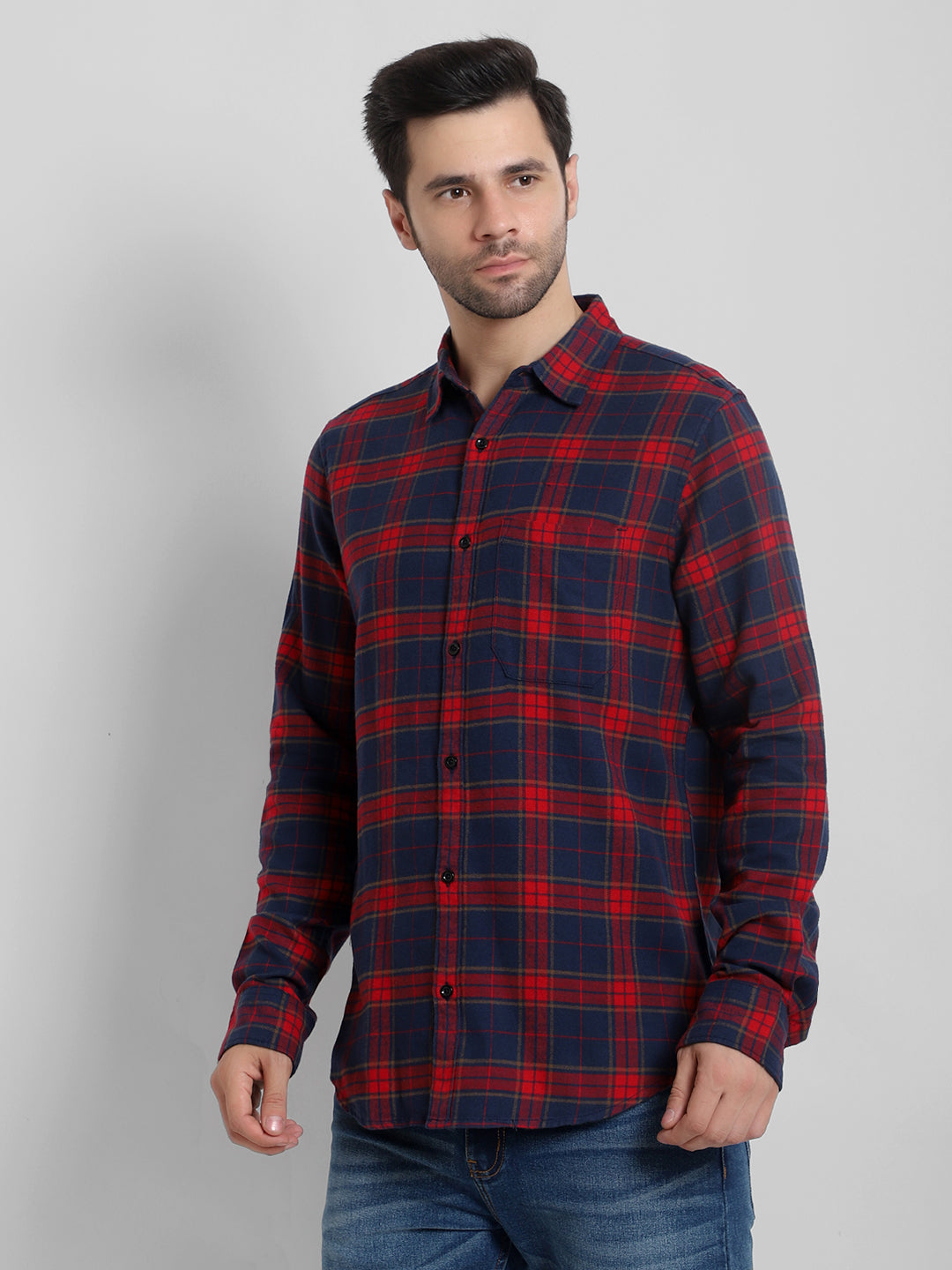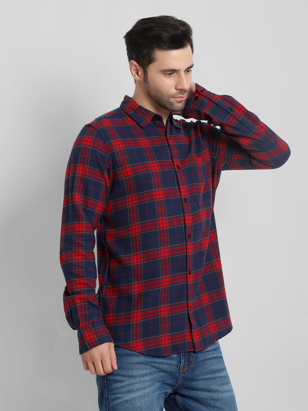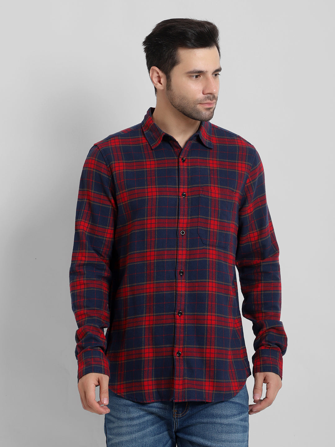 For a versatile look, this classic checked shirt is your go-to piece. Perfect for both casual and semi-formal settings, it pairs seamlessly with denim jeans for a laid-back weekend or with tailored trousers for a more refined outfit. Roll up the long sleeves for a more relaxed vibe, or keep them buttoned at the cuffs for a crisp, professional appearance. The single patch pocket adds functionality without sacrificing style, ensuring you look put-together in any scenario.