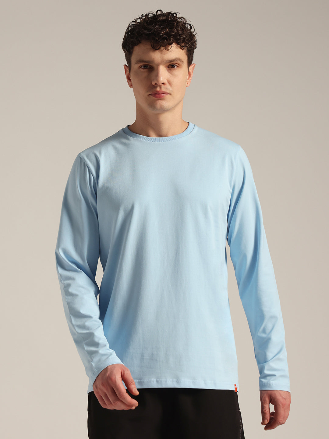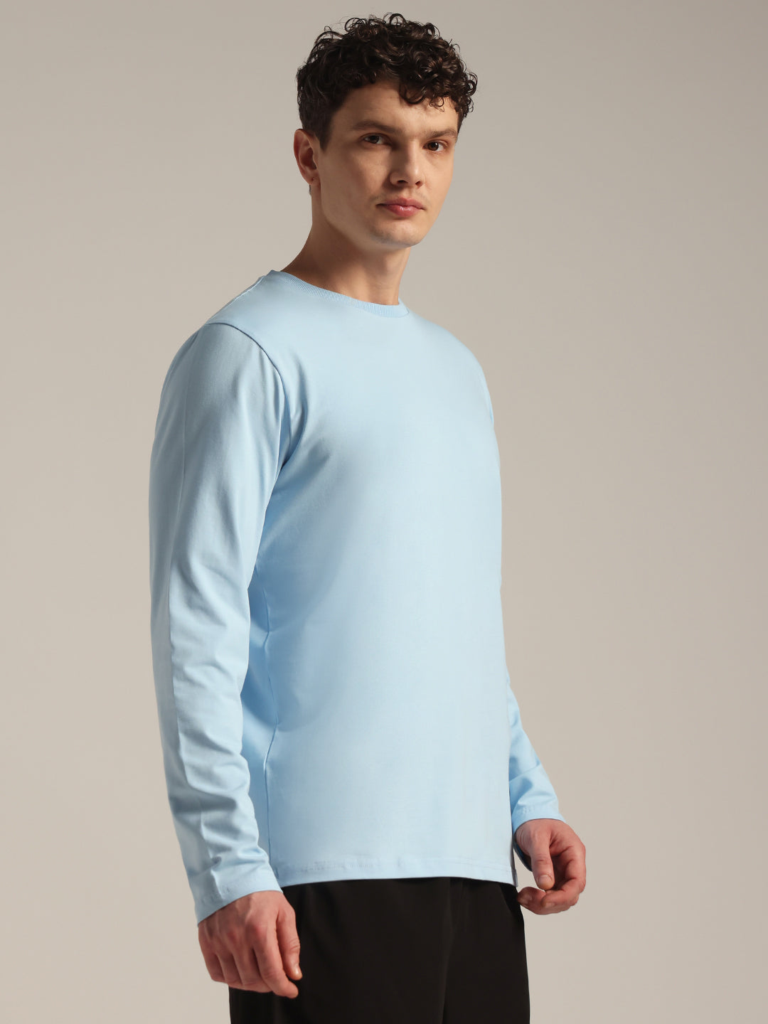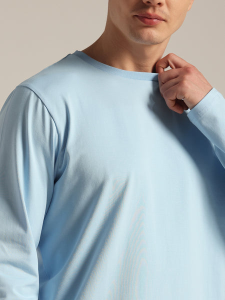Men Fullsleeve Roundneck T-shirt Sky Blue