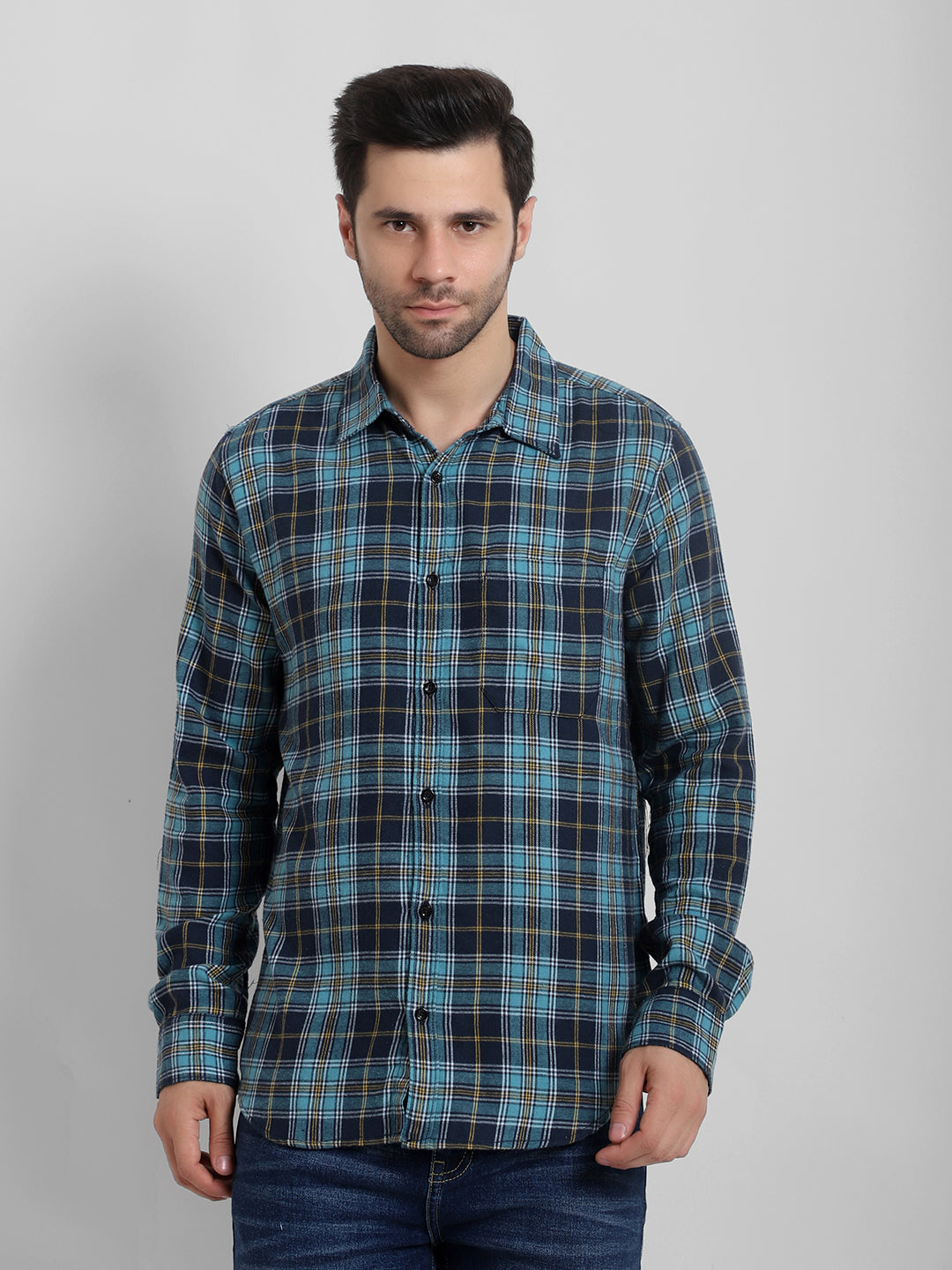 For a versatile look, this classic checked shirt is your go-to piece. Perfect for both casual and semi-formal settings, it pairs seamlessly with denim jeans for a laid-back weekend or with tailored trousers for a more refined outfit. Roll up the long sleeves for a more relaxed vibe, or keep them buttoned at the cuffs for a crisp, professional appearance. The single patch pocket adds functionality without sacrificing style, ensuring you look put-together in any scenario.