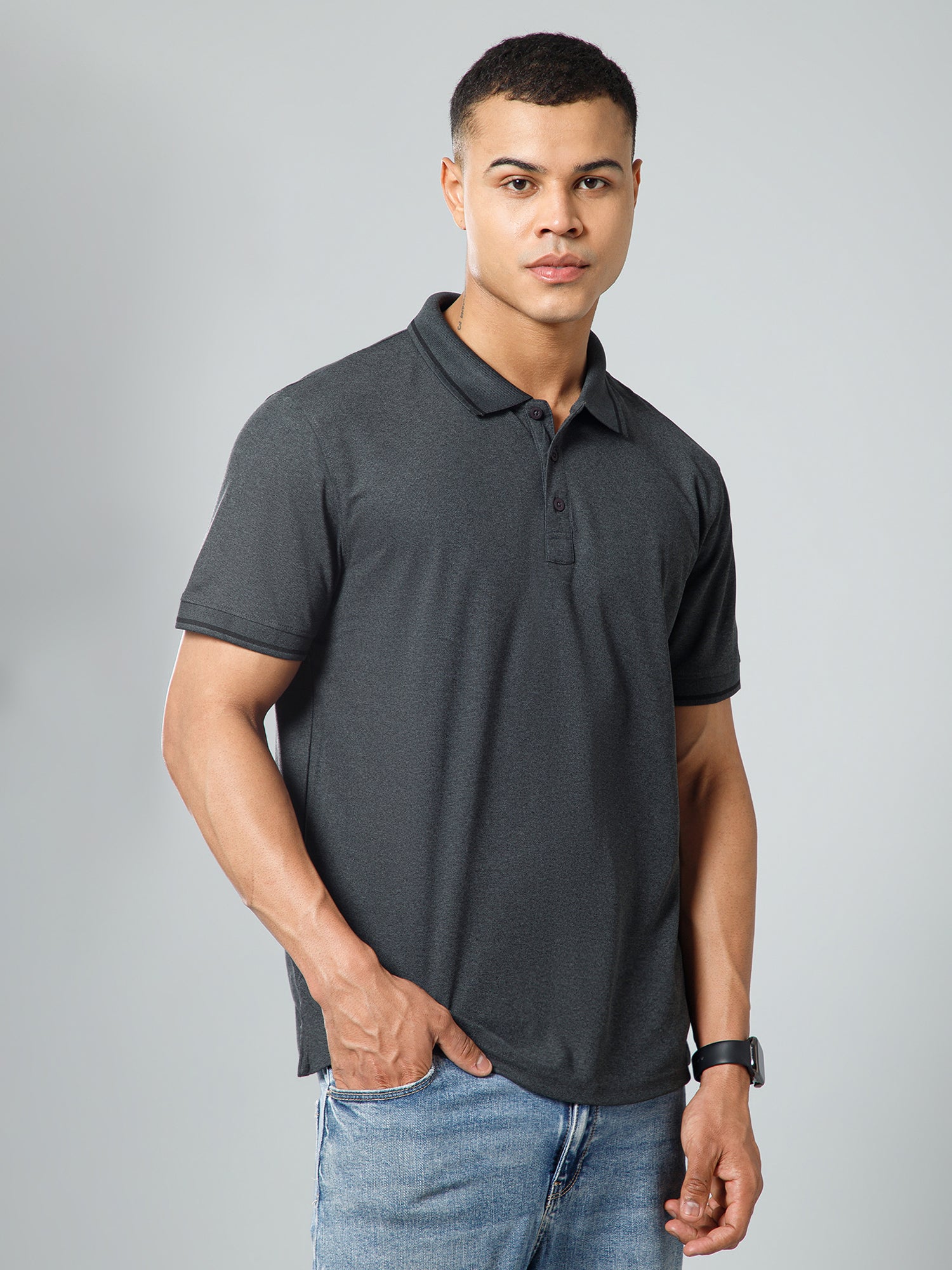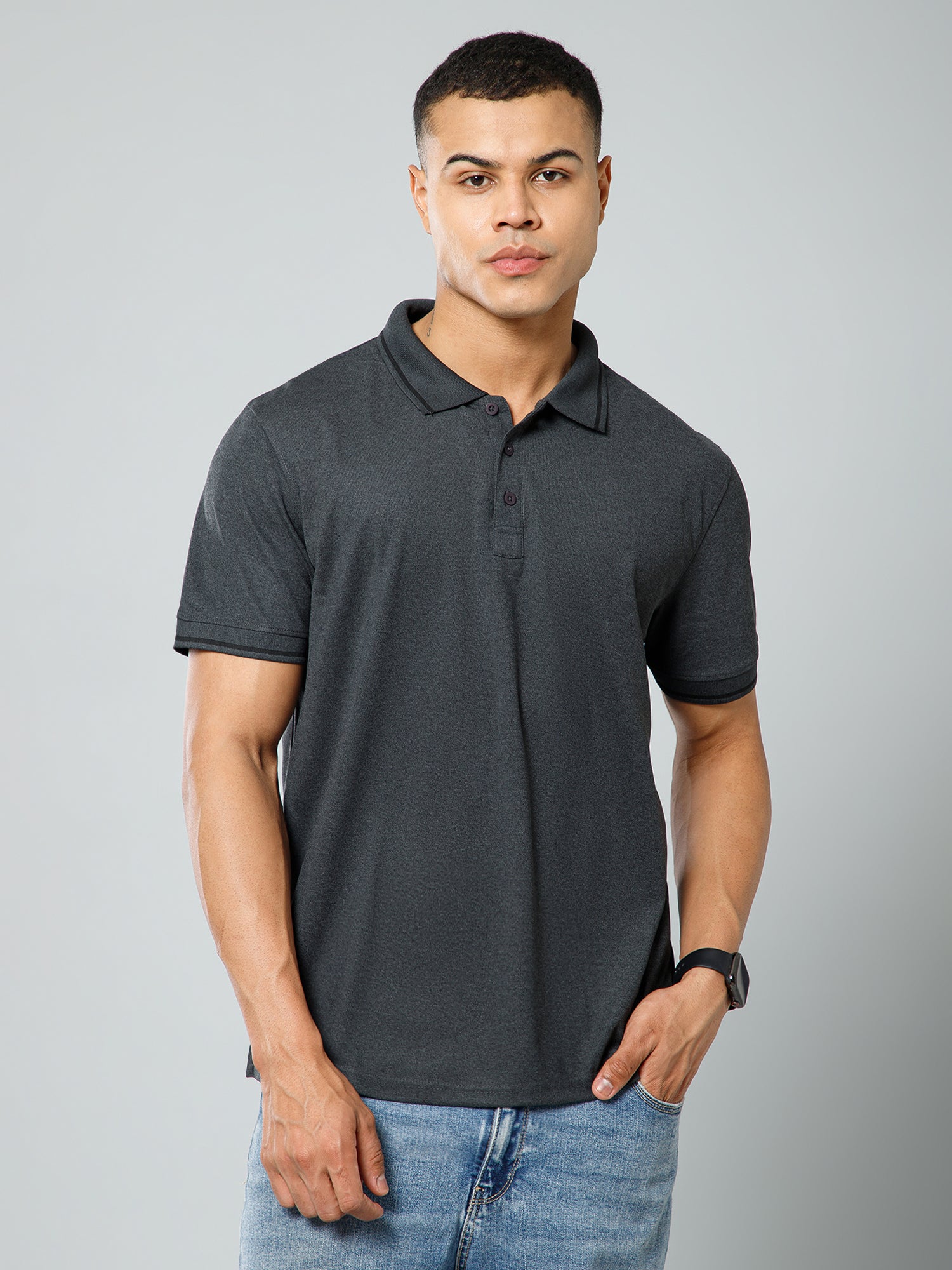 Canjuice Men Active wear melange Tipping Polo